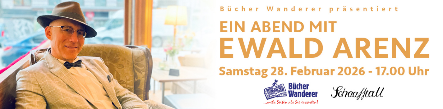 Am Samstag, dem 28. Februar 2026 wird der erfolgreiche Autor Ewald Arenz auf Einladung meiner Buchhandlung um 17 Uhr im Schaafstall in Egestorf aus seinen Büchern lesen.
